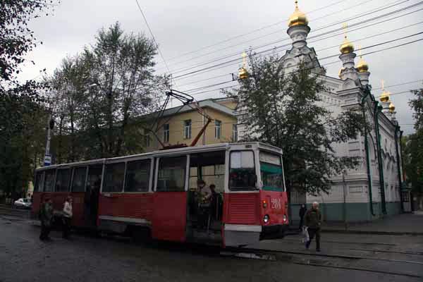 Drop down a street or two to the west, away from the clubs and cafes of Prospekt Lenin, and you immediately find yourself in Old Siberia. A leafy street called Tatarskaya (this was once the city’s Tatar quarter) has old wooden houses with elaborately carved window surrounds and friezes. Poor, a little tumbledown but undeniably picturesque, this is the sort of thing that tourists come to see, although most tend not to wander this far off the direct Trans-Siberian route between Yekaterinberg and Irkutsk.
