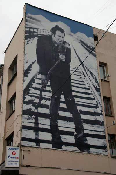 Stylish cafes are not the only concession to Western culture. Halfway along the high street a gable is covered with an enormous poster of gravel-voiced American troubadour Tom Waits standing astride a railway line and bellowing into a microphone windscreen mounted on a crooked stick – very much Tom the iconic hobo poet. The club in the basement beneath is called ‘Underground’ (a song from Swordfishtrombones) and, of course it is a lovely pun – Tom(sk) Waits – geddit. It seems unlikely that Tom Waits’ management is aware of this brazen Siberian deployment but equally doubtful that Californian copyright law stretches quite this far. Waits is well known as an enthusiastic litigator of those who besmirch his image but this one seems to fit the brand perfectly.