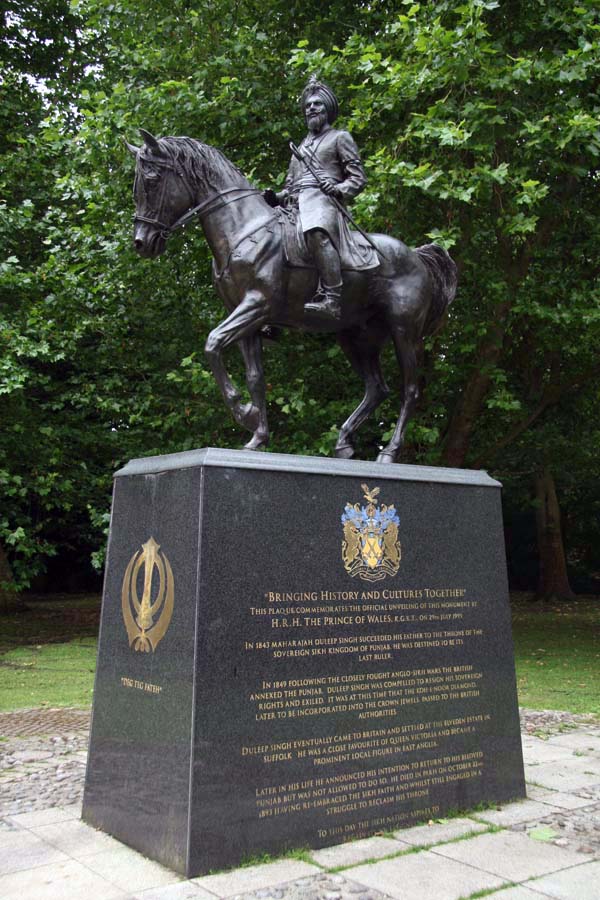 Elveden Hall is best known as the home of Maharajah Duleep Singh, a deposed Sikh prince from the Punjab who was exiled to England for his part in the Sikh Wars during Queen Victoria’s reign. The Maharajah purchased the estate in 1863 and refurbished the Georgian hall in lavish Moghul style using Italian craftsmen – a North Indian tradition apparently. He also built an aviary where he kept exotic birds and in an unselfconscious effort to outdo the English squirearchy he took up the habits of English country life with a passion, leading parties that shot thousands of pheasants on his estate on an almost daily basis. Naturally, if you have a 17,000-acre estate and a vast private fortune, you can do that sort of thing without worrying too much about the cost of it all. The Maharajah was always keen to impress the inhabitants of his adopted home and tended not to do things by halves. He was even good enough to hand over the Koh-i-Noor diamond to QueenVictoria and to cheerfully convert to the Anglican Church such was his willingness to fit in. An equestrian statue of the Maharajah stands in Thetford and, although he died in Paris in 1893, his surprisingly modest grave lies in the churchyard of Elveden’s St Andrew and St Patrick Church.