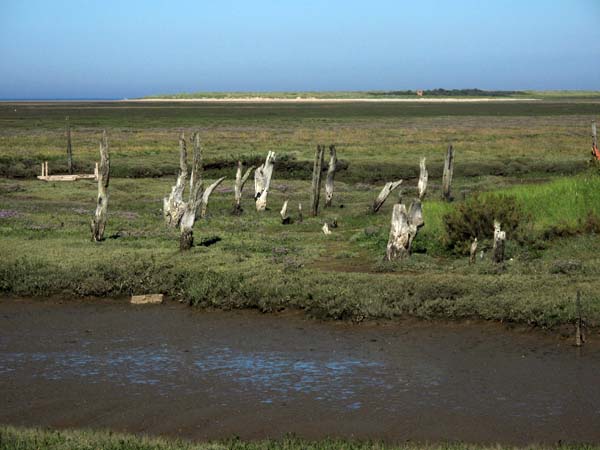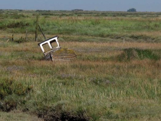 As the road climbs to its highest point – a lofty (for Norfolk) 50 metres – the coast comes abruptly  into sight: a blue salt-haze with a large wind farm on the horizon, turbines spinning slowly as if doing their bit to keep the world turning. Thornham village is but a short walk downhill. Once considered to be a ‘smuggling village’, the village is now largely a smart enclave of expensive 4x4s and wealthy folk ‘up from London’. Thornham is undeniably attractive: set just back from the coast, separated from it by bird-rich marshes, its brown carstone cottages look as if they are made from gingerbread, good enough to eat.