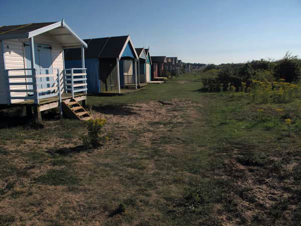 Approaching Old Hunstanton the coastal path follows the line of shingle between the dunes and a golf course. The buildings of Old Hunstanton eventually become distinguishable on the cliffs ahead.  Finally, beach huts in the dunes announce the outskirts of town, where a track leads up past the Le Strange Arms Hotel to the main coast road. My coastal circuit – less a circle, more a wobbly ellipse – is complete.