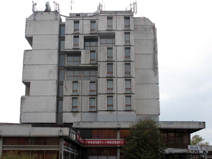 While some of these government-owned hotels manage to keep going, most of their trade coming from large wedding parties and occasional school-trip groups, many have closed for business and languish unloved in provincial town centres awaiting investors that never come. They remain as ghostly real estate of the recent Yugoslav past, an embarrassment of concrete and glass that is too big and decrepit to profitably invest in, and too massive to easily demolish.