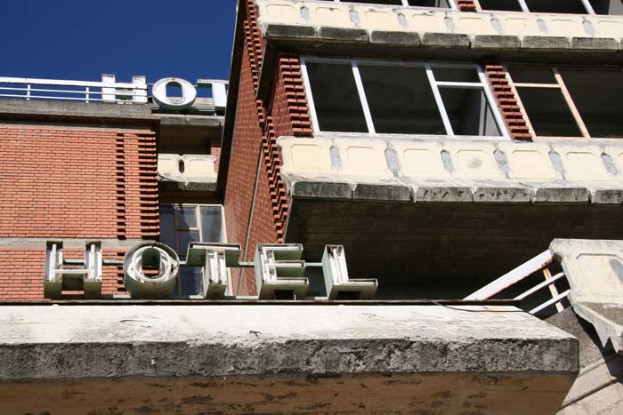 They are a dying breed, Yugoslav hotels. And I use the word ‘Yugoslav’ advisedly as, although the buildings shown here are in what is now Serbia, all were erected during the period when that country was still part of Yugoslavia. At worst, these hotels, largely built in the 1960s and ’70s,  are concrete monoliths: multi-storey overnight people-parks, the sort of structures that might make Prince Charles go bug-eyed with apoplectic rage. Indeed, some are so brutally concrete and cubic that they bring to mind Rachel Whiteread’s House – a three-dimensional concrete representation of the internal space of an earlier dwelling.