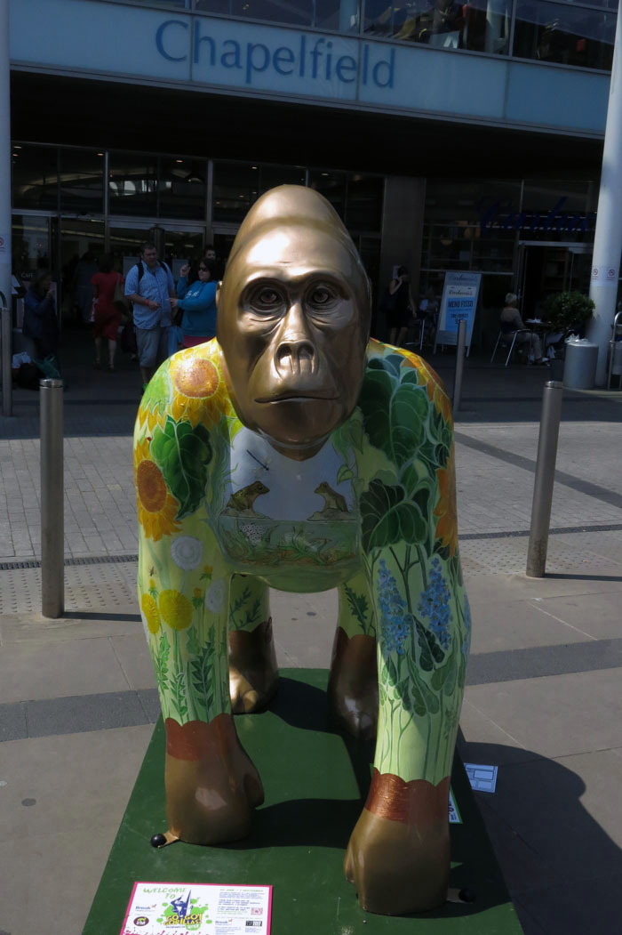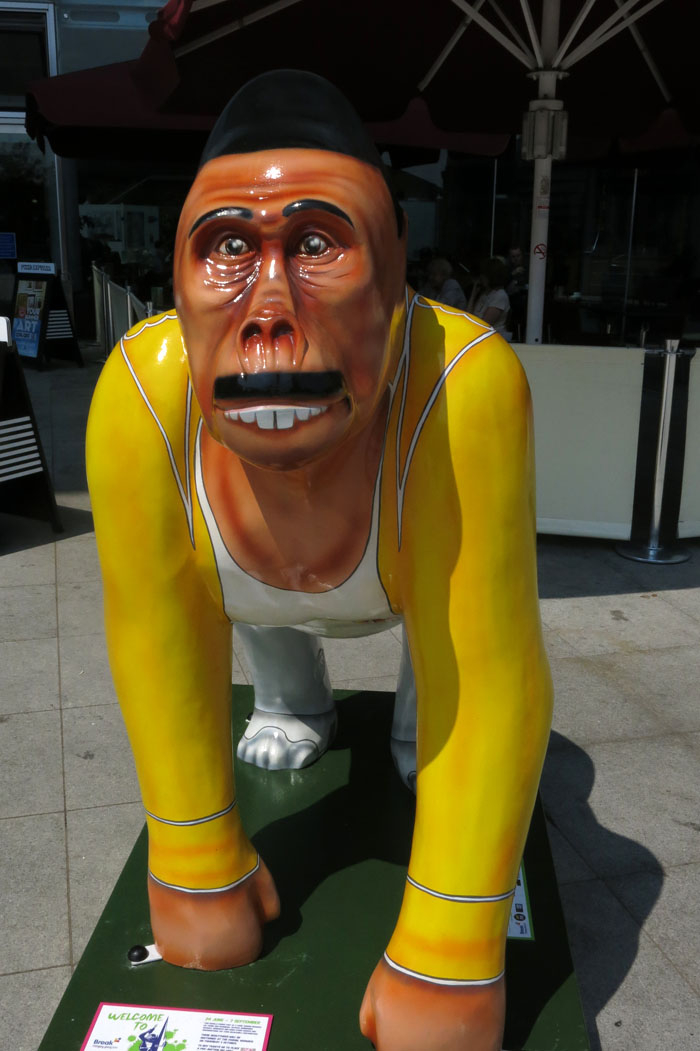 With over 50 gorillas scattered around the city there is considerable variety and plenty of local flavour. There’s even an ‘Ivan the Iconic Norwich Gorilla’ outside The Forum who bears the canary logo of Norwich City FC in addition to a representation of the city’s Norman castle and Stephen Fry’s clever avuncular visage. There is also a ‘Mr Carrow’ gorilla dressed in the yellow and green strip of Norwich’s Premier League heroes. I could probably live without Freddie Mercury reincarnated in gorilla form, and sadly there is no sign of local antihero Alan Partridge aping about, but you cannot have everything.
