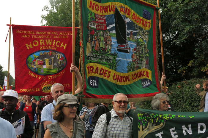 Rural south Norfolk might not seem the most obvious place to see trades unionists and brass bands marching under banners but they are used to it here at Burston – it’s been going on for 30 years. A necessary reminder for what is usually considered a true blue county that zombie neoliberalism is not the only narrative. Long may it continue.
