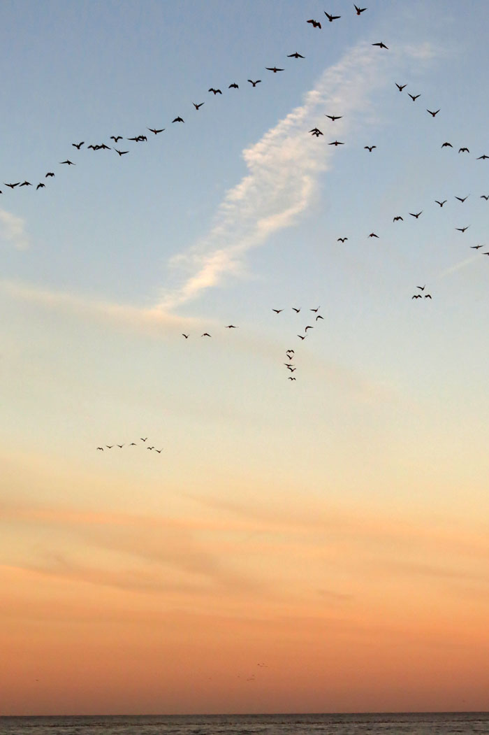 1. Thanks very much. I hadn’t thought of a line of ants but I see what you mean. I was just happy that the geese seemed to be closely following the pink-tinged streak of cloud as if it were some sort of aerial highway.