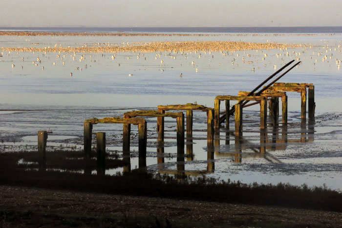 There is an unwritten discipline at work, and every bird seems to know its place in the squadron. Flapping inland, the geese merge loosely with other groups before they eventually disappear from view. To our human eyes, Snettisham church rising out of the mist is the only recognisable local landmark; perhaps its steeple serves as a beacon to the geese too, as they seem to know exactly where they are going. IMG_3218