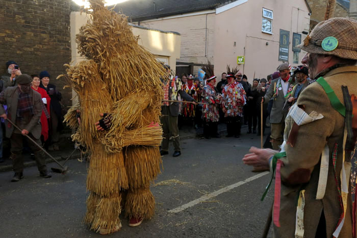 Similar winter traditions once existed elsewhere – in other parts of England and also in central Europe and Germany. There are clear connections, too, with ancient pre-Christian wild man traditions, and even similarities with some forms of West African tribal practices in which men are adorned in fetishistic animal or demon costumes. There’s also a plain link with agricultural fertility, and the desire for a bountiful harvest, as only the best quality straw from the previous year’s harvest is used to dress the bear, which is paraded around the town’s squares and taverns on the Saturday before the straw suit is taken from its occupier and ritually burned on the Sunday.