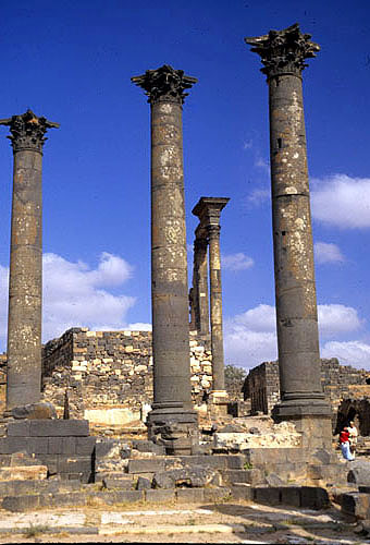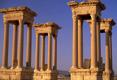 SYR023LMI visited Syria, Lebanon and Jordan in 2000 – an inspirational trip  in which I saw a plethora of ancient sites and exciting modern cities, and encountered welcoming and friendly people wherever I went. What I see on television news today does not register with what I experienced back then, although sometimes the backdrop – Aleppo Citadel, for example, which now lies in ruins – is just about recognisable through the         debris and smoke. These photos – low resolution copies of slides – are those that I took early one April morning after staying overnight at Palmyra.