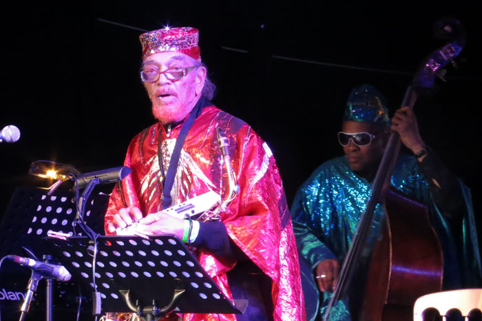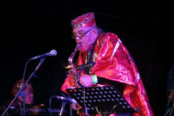 The Bootleg Beatles concluded the festival on Sunday, and were glorious with their note-perfect trawl through the very best of the Fab Four’s 1966—70 material, but for me the real star of the festival was the penultimate act, the Sun Ra Arkestra directed by 91-year-old Marshall Allen. Allen joined the band way back in 1957 and took over the musical directorship in 1993 when their controversial leader Sun Ra (born Herman Poole Blount, legal name Le Sony’r Ra 1914—93) ‘left the planet’ to return to his native Saturn.