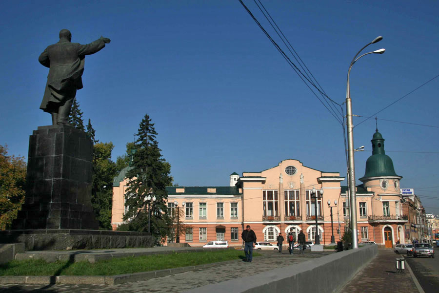 Lenin waving at civic buildings, Yekaterinberg, Russia