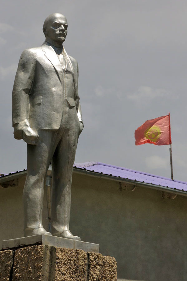 Stoic upright Lenin with Kyrgyzstan flag, Chaek, Kyrgyzstan