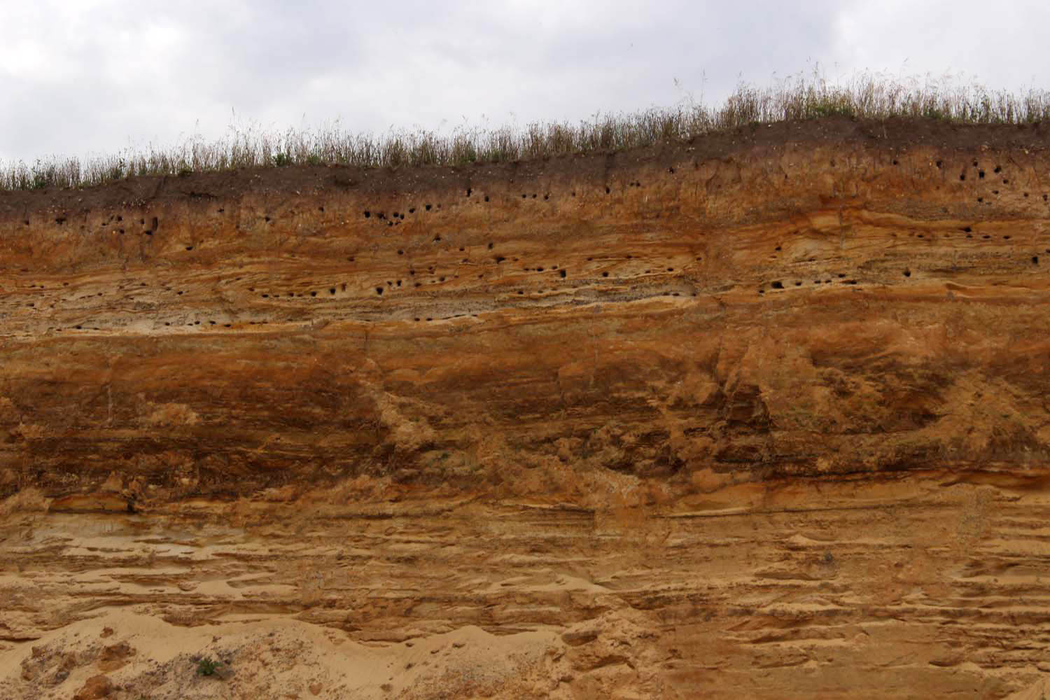 The cliffs may be ephemeral geomorphology, constantly pushed back by the eroding tide, but they possess enough permanence for colonies of sand martins to pit them with nesting burrows high up the cliff face. The birds swoop and chatter in high-pitched whispers as they gather flies above the shingle, flying in and out their nest holes faster than the eye can bring itself into focus.