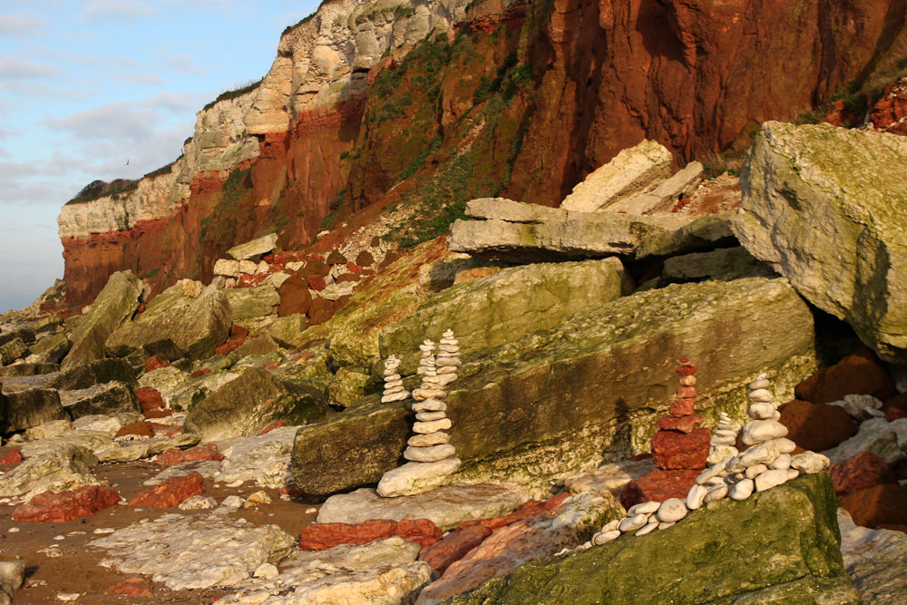 1. There us a local man who arranges the stones in patterns and cairns, carefully arranging them by colouring and size. He is often seen on the beach throwing them into sorted piles or stripes. I think the tides must confound him, as his creations are more ephemeral. However, he is daily diligent!