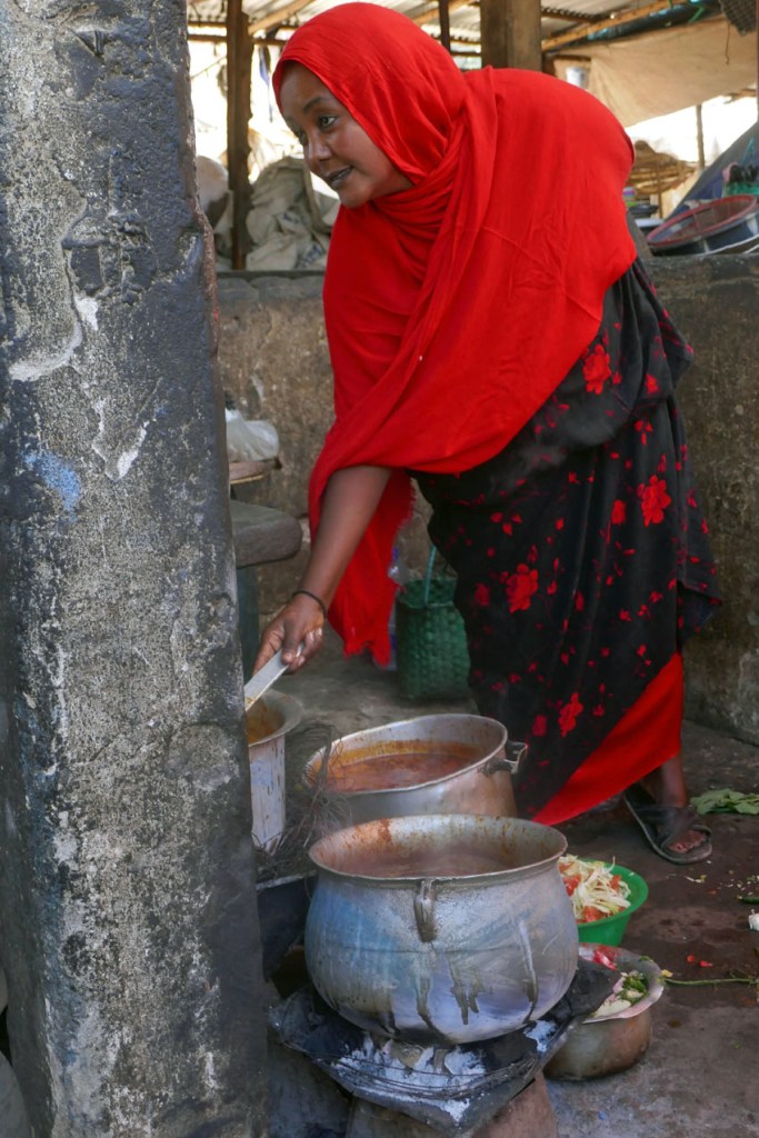 Another facet of Ethiopian culture that sets the country apart is the food, which is quite unlike anywhere else. The mainstay of the diet is a sour spongy pancake called injera, which is made from an ancient indigenous grain called teff. This is eaten along with small helpings of spicy vegetable or meat sauces. For many Ethiopians, if they can afford it, kitfo (spicy raw beef) is the preferred accompaniment, although, perhaps counter-intuitively, there are actually two days of the week, Wednesday and Friday, when restaurants are obliged to serve only ‘fasting’ food, which is strictly vegan. Whether meat or vegetable, raw or cooked, freshness is probably the most important factor in regards to health, and I believe it was the suspicious, rather tired-looking sauce that came with the injera I had eaten the previous night in Addis that had been the cause of the stomach cramps that troubled me throughout the long journey.