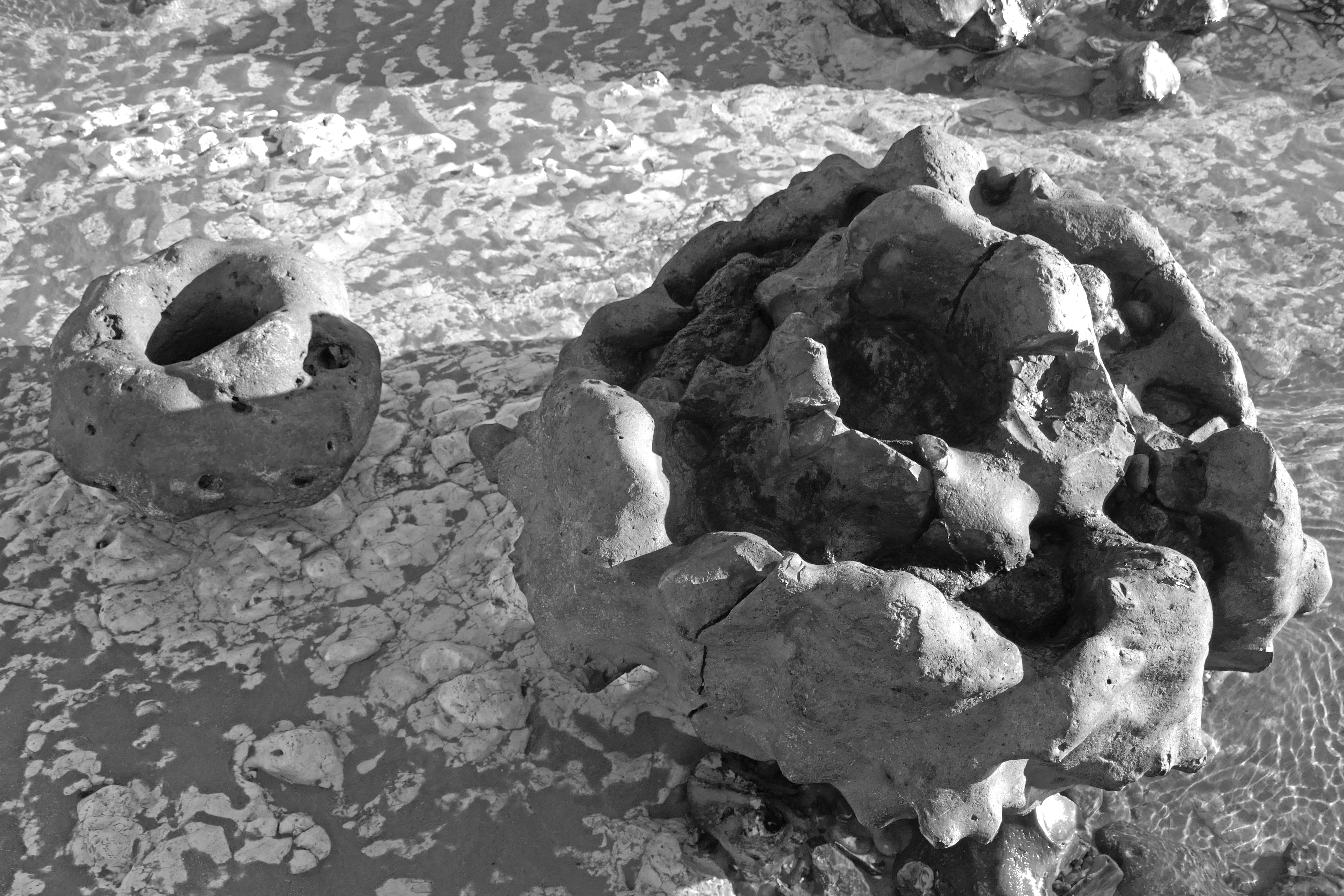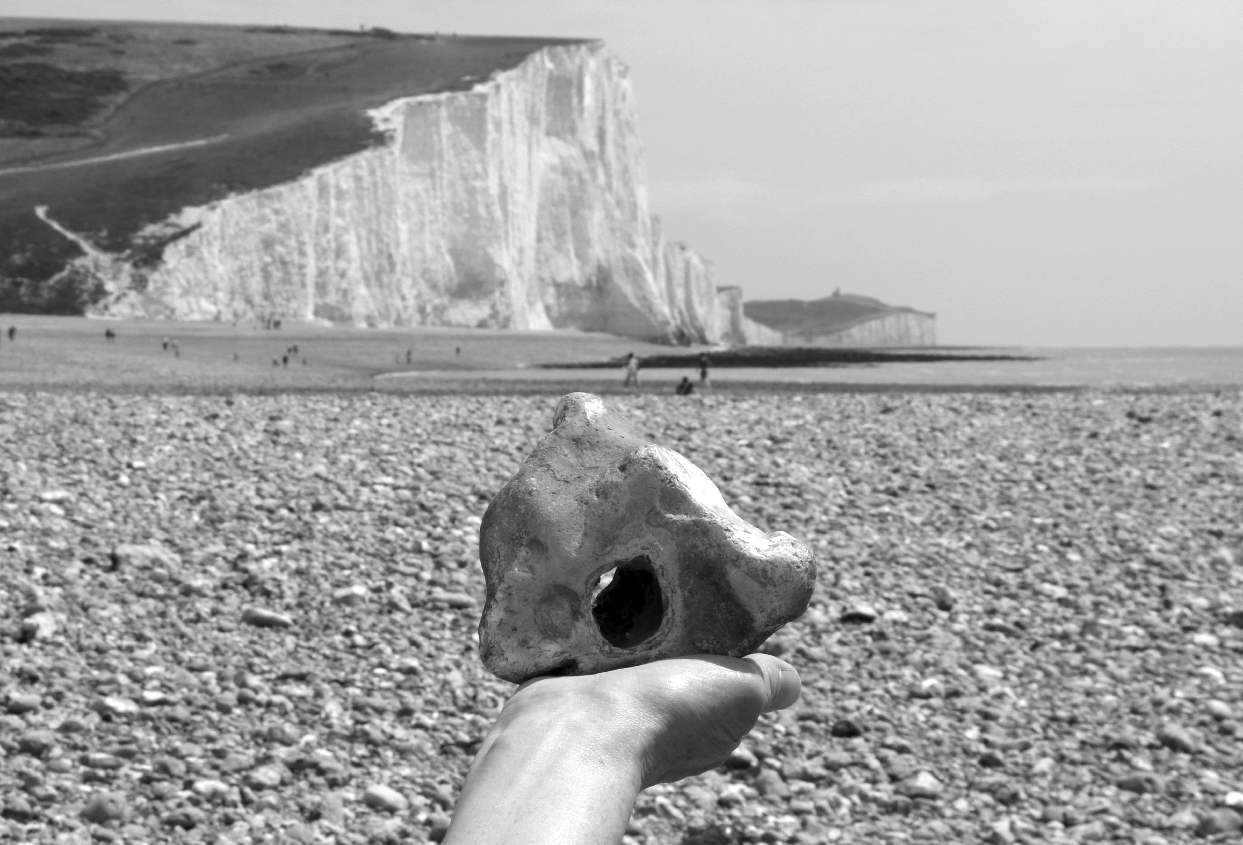 The name paramoudra is Irish, deriving from the Gaelic peura muireach, meaning ‘sea pears’. They have also been called ‘ugly Paddies’ in the past, which seems a little harsh, even racist. They are beautiful in their own way. Their Norfolk name of ‘potstones’ makes more sense, as some of the better formed ones could easily be adapted to serve as plant containers. Paramoudra, like all flints, are actually pseudofossils. They are generally thought to be fossilised barrel sponges but the precise process of their formation is not fully understood.